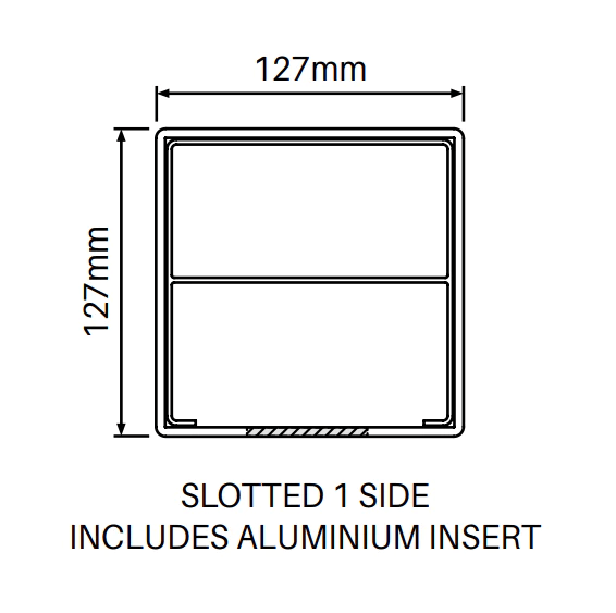 Includes internal 2mm thick aluminium insert entire length of post (ie 2500mm long). Provides post rigidity and also, sturdy substrate for fixing of hinges or latch