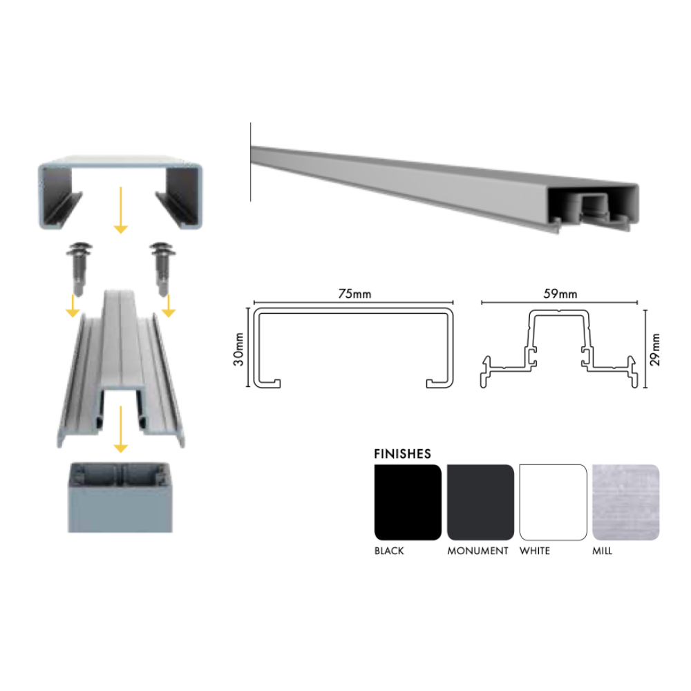 • 2 part railing: (1) undercapping rail is screwed to top of post & (2) rectangular handrail is then snapped onto undercapping rail