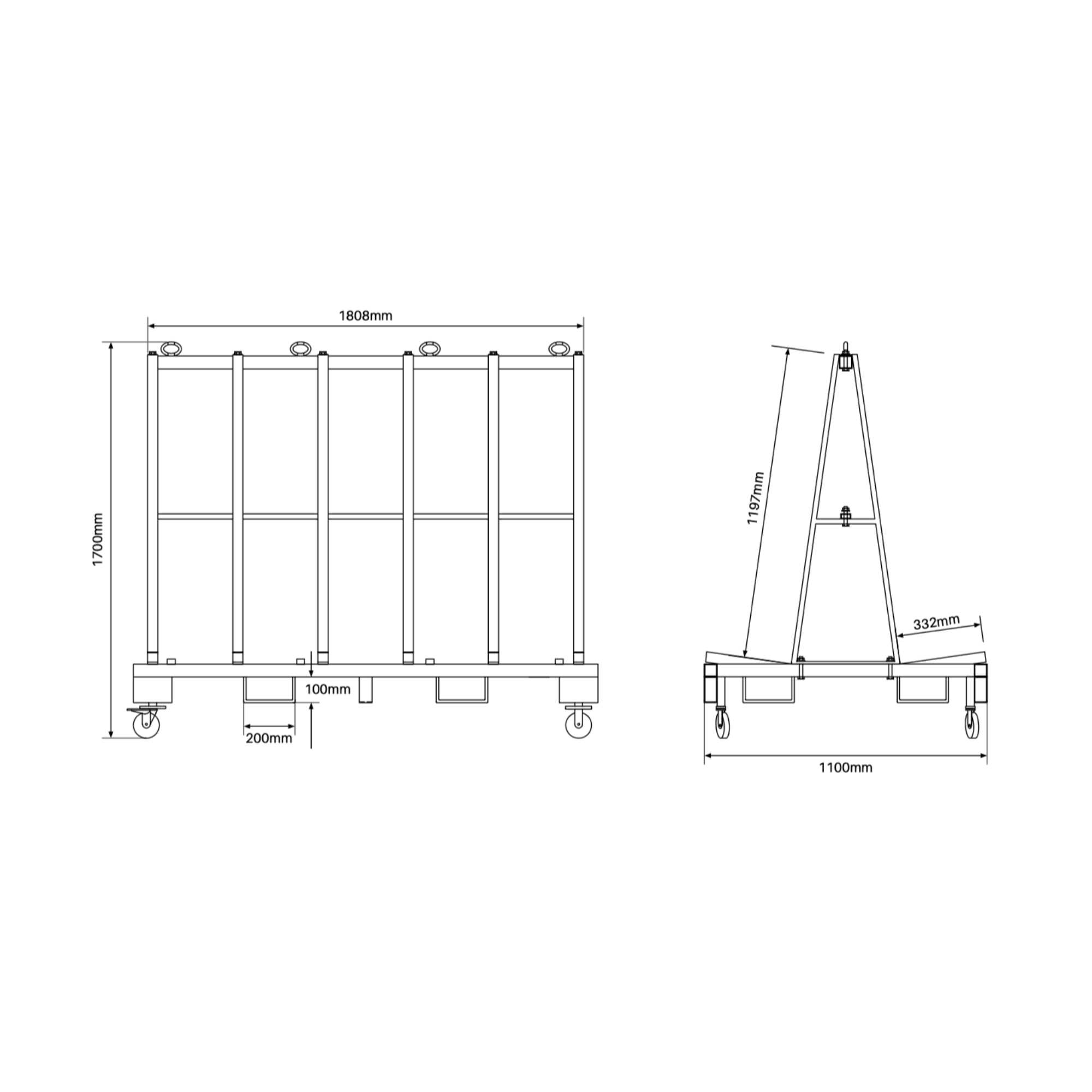 • 1100mm wide x 1808mm long x 1700mm high