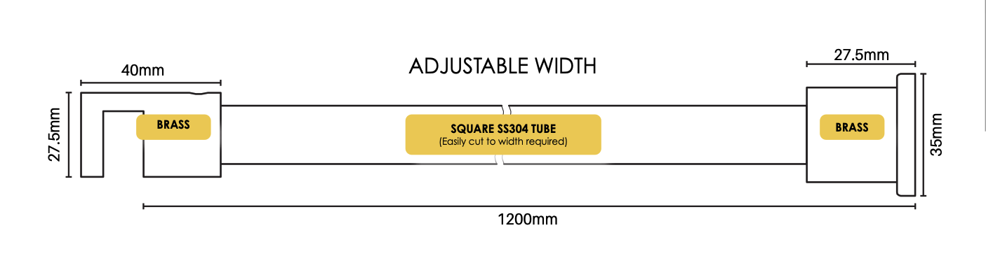 • Width adjustable up to 1200mm – simply cut stainless tube to required length
